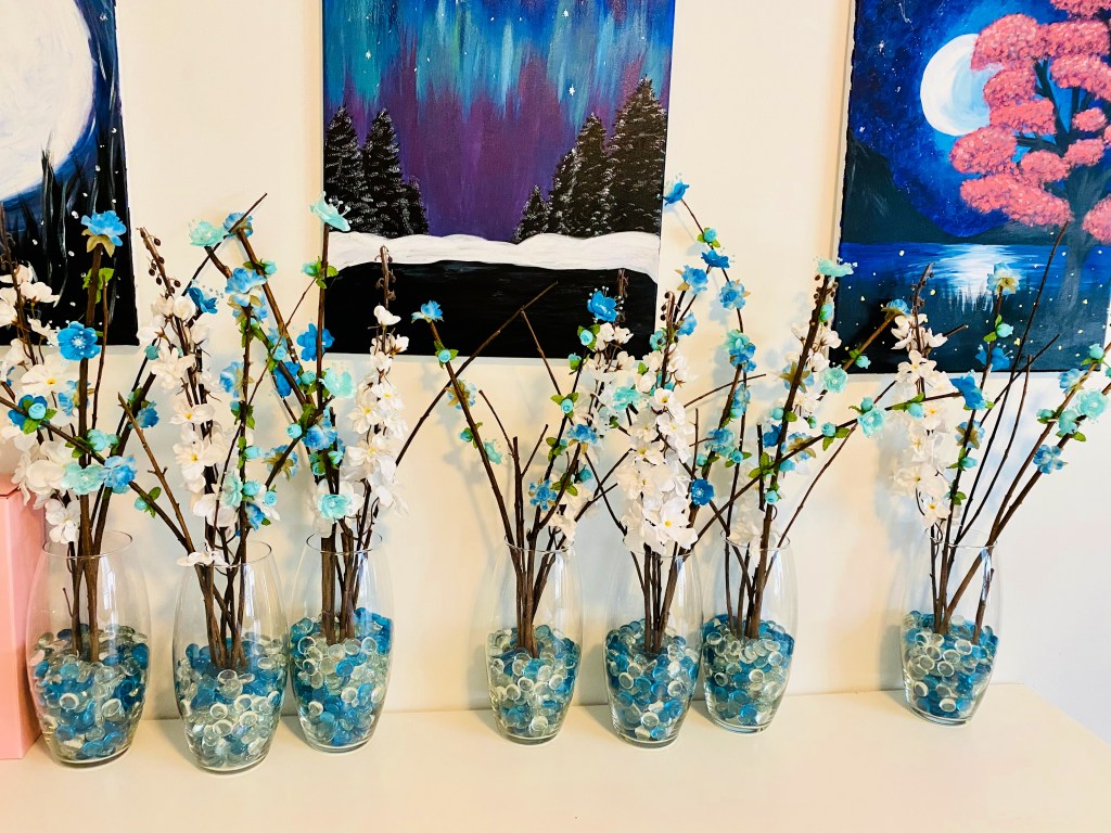 i didn’t finish three, but thirteen centerpieces, meaning i finished them all! i was so happy when i was done because the center pieces have been the most stressful part of the process for me. i still need to update you all on the wedding details and how planning is going so i’m hoping to actually do that this month. it was a lot of work, but i’m pretty happy with how they turned out.
