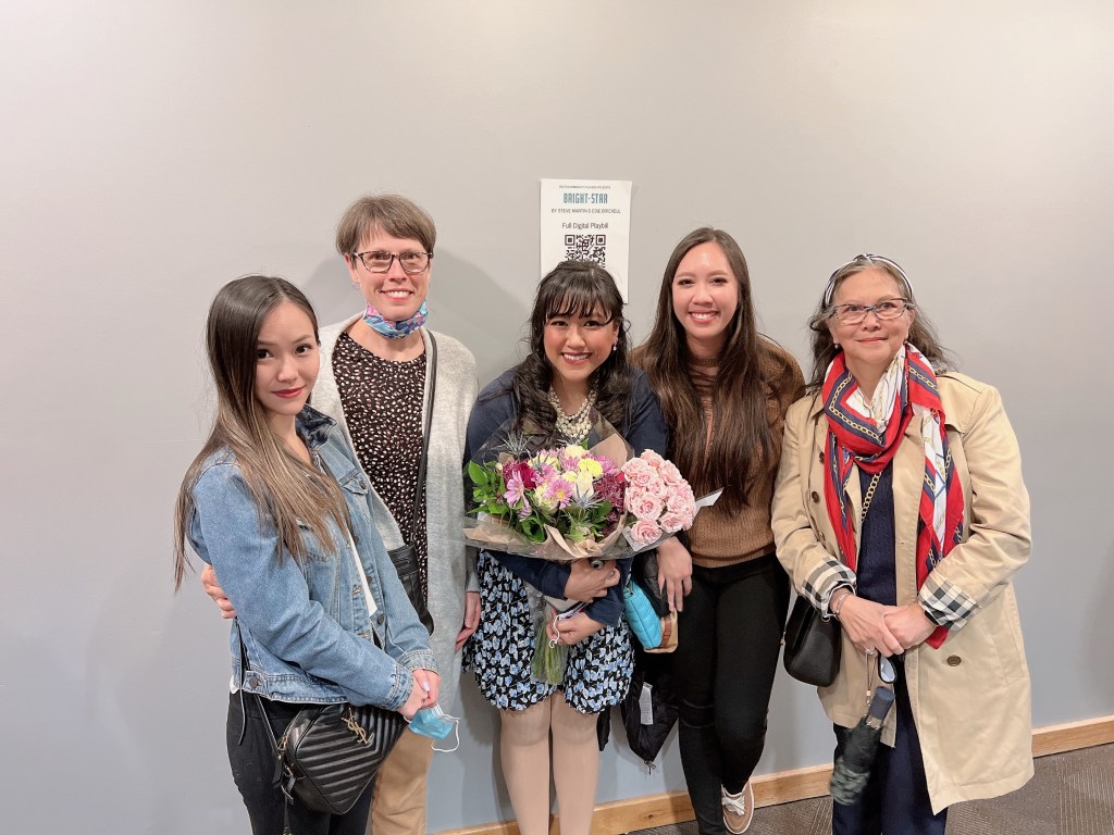 the love i received from my friends and family was almost unprecedented. so many flowers – even some sent from those who couldn’t make it, made me feel so impossibly special. being able to see them out in the audience while i performed gave me the drive to do my absolute best. not to mention my wonderfully patient and enduring husband, tony. he listened to bright star talk for months and months, dealt with late nights, a cranky wife, rarely seeing each other at some points, and me coming home going a hundred miles per hour on adrenaline when he was trying to wind down for the night. but as this show came to a close, we were discussing what my next plans were and he said, “i want you to take a break because i’m selfish, but i also want you to keep doing shows because i can see how happy you are.” some days i truly think i don’t deserve him.