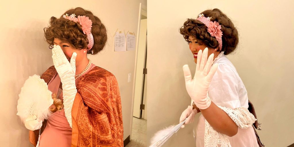 preparing for the role didn’t just include doing my research, i also had to figure out how to display pregnancy properly. i spent a lot of time practicing the “pregnant waddle” with the help of my assistant director. it was really something i spent a lot of time thinking about. a lot of people who play pregnant roles tend to have moments they forget that they’re supposed to be pregnant, and so i made it my goal to make sure it was at the front of my mind at all times. i’m going to go ahead and brag that someone who came to see the show thought i was actually pregnant! i feel so proud.